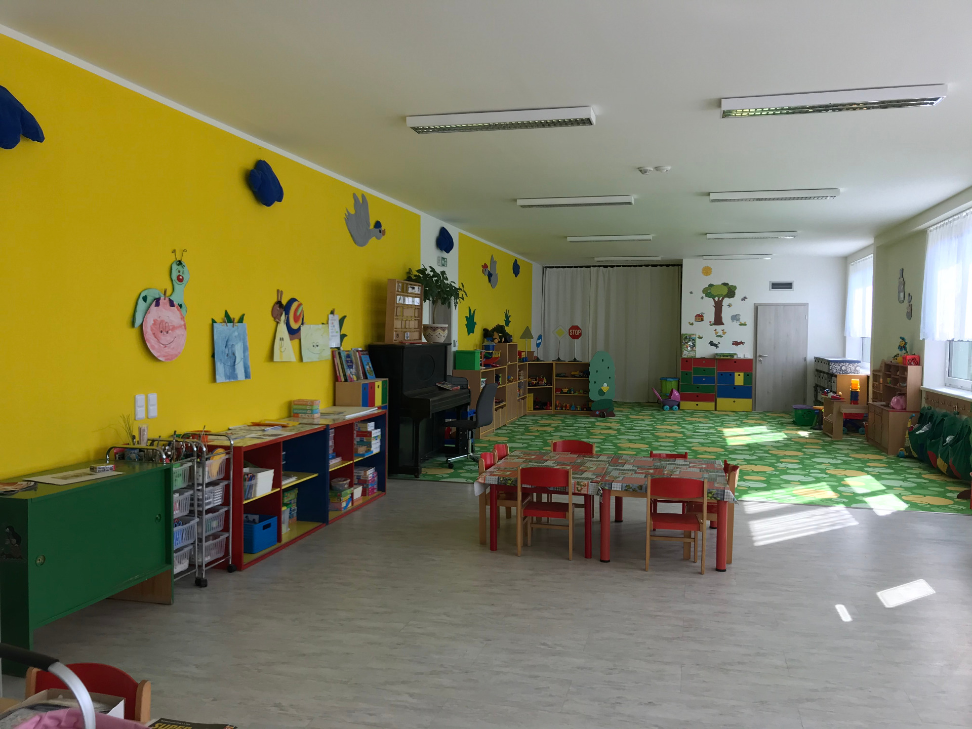 Budova MŠ je dvoutřídní a je umístěna ve středu obce, s dostatečně velkými prostory. Obě oddělení mají k dispozici hernu, která bude využívána i jako ložnice, třídu, umývárnu + toalety, šatnu dětí. Součástí budovy je kancelář ředitelky a VŠJ, hospodářská část budovy a kuchyň, která zajišťuje stravování nejen pro MŠ, ale i pro sousední ZŠ Bylany. Ve třídě je dostatek hraček, didaktického a výtvarného materiálu pro hru a činnosti dětí. V obd. 7 - 8/2009 došlo k rozsáhlé rekonstrukci budovy (oprava a výměna vodovodních rozvodů, výměna dětských WC a umývadel vč. nových obkladů a položení dlaždic, rekonstrukce el. rozvodů, vymalování veškerých prostorů). Na základě této rekonstrukce bylo požádáno o navýšení kapacity na celkový počet 28 dětí. 1.3.2019 - rozsáhlá rekonstrukce celé budovy MŠ. Po tuto dobu byla MŠ přestěhována do náhradních prostor v sousední obci Chotouň (Domov s pečovatelskou službou - celý šk. rok 2019/2020). Původní, zcela zrekonstruovaná MŠ, zahájila provoz 1.9.2020, v provozu je zatím jedna třída. Součástí budovy MŠ je rozsáhlá zahrada s pískovištěm, dřevěným programem od fa BEK (houpací auto, polyfunkční domek se skluzavkou), dětským kolotočem. V rámci získání dotace bude zahrada dovybavena novými herními prvky.